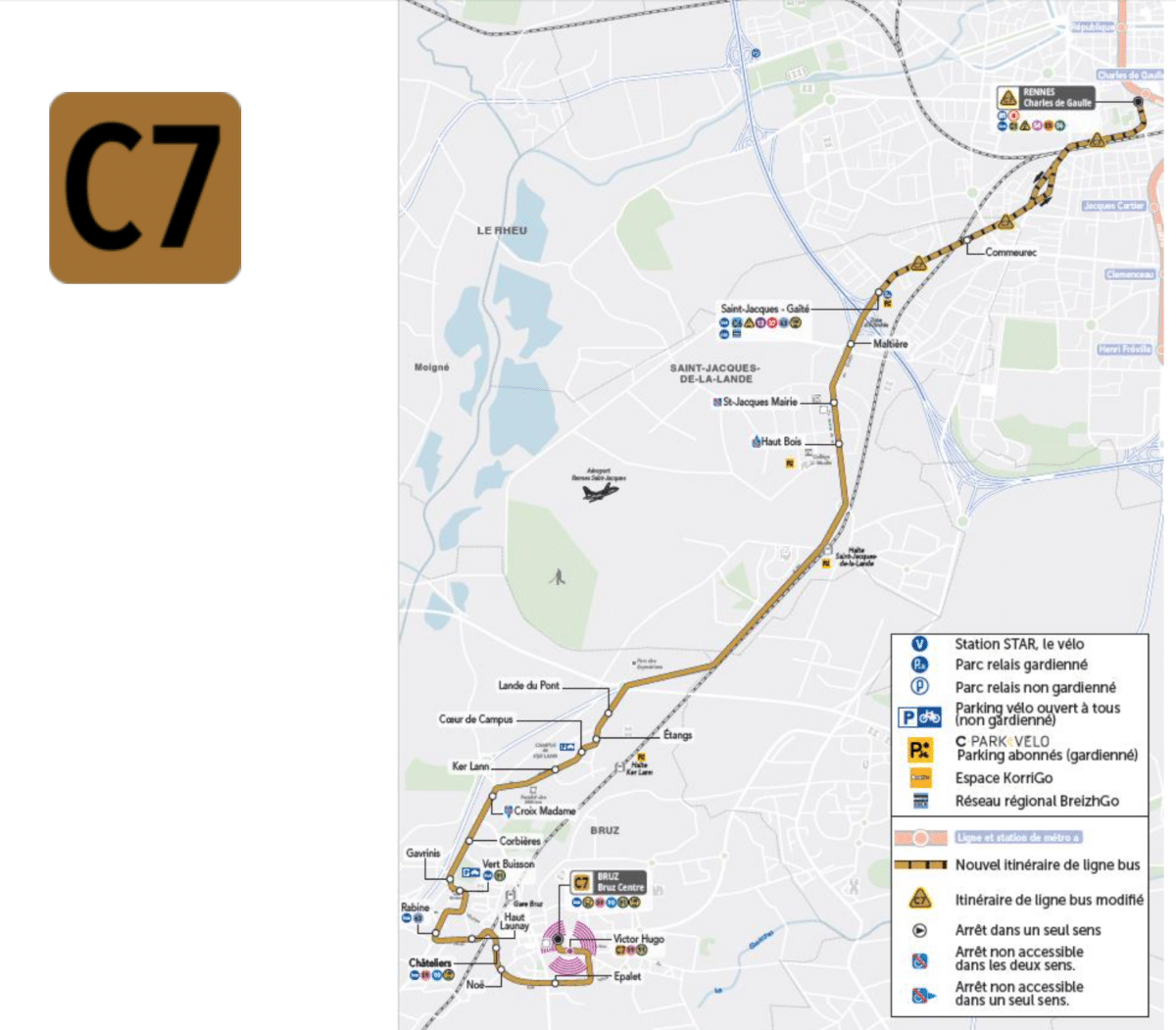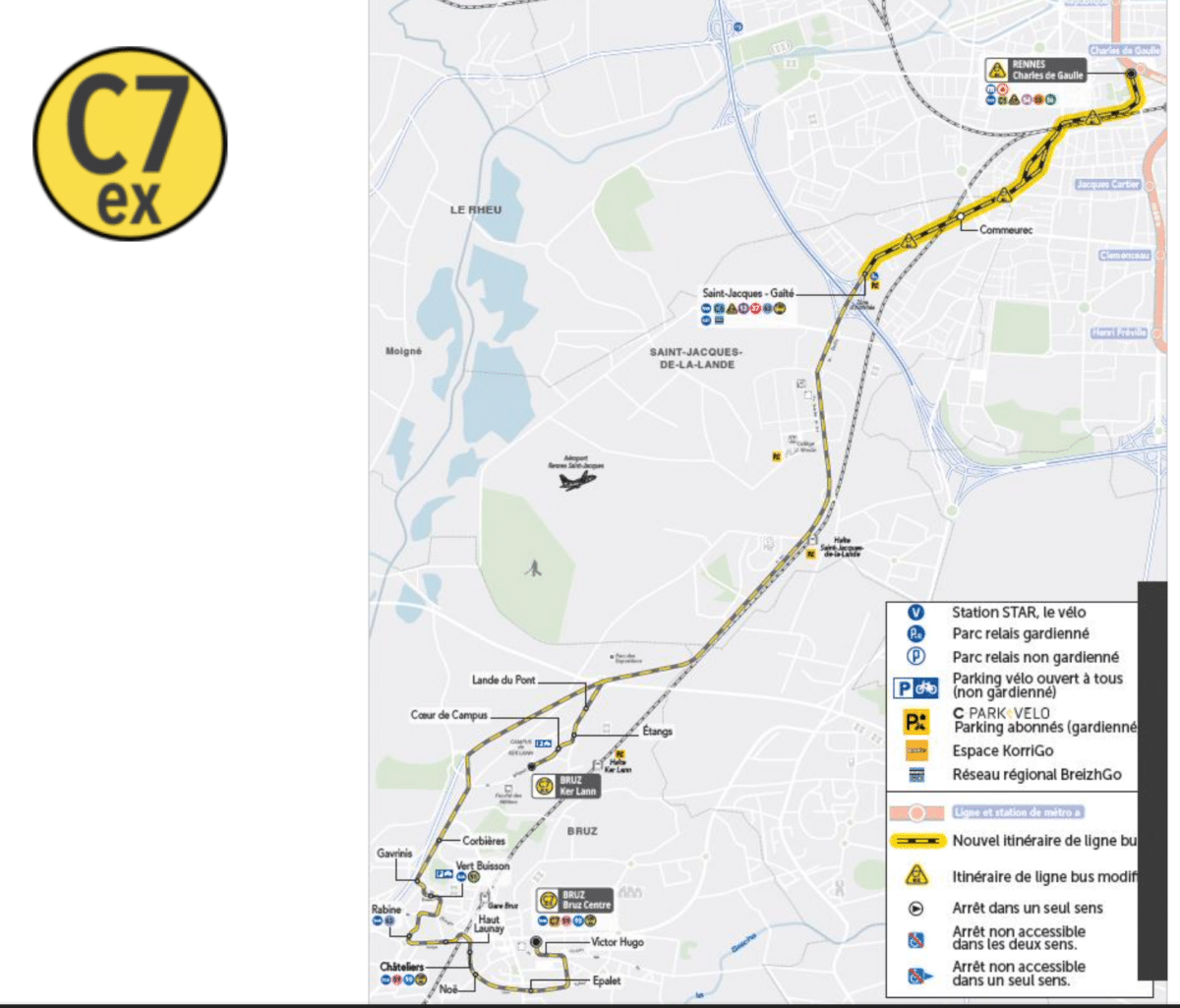 Prolongement de la ligne C7 et de ses express jusqu’à Charles de Gaulle, après avoir desservi le pôle Saint-Jacques – Gaîté. La ligne C7 desservira également l’arrêt « Commeurec », afin de renforcer l’offre disponible à proximité du quartier de La Courrouze. Cette ligne très fréquentée, qui dessert Bruz, le Campus de Ker Lann et Saint-Jacques-de-la-Lande, bénéficiera ainsi d’une connexion directe au centre-ville de Rennes et au métro a.