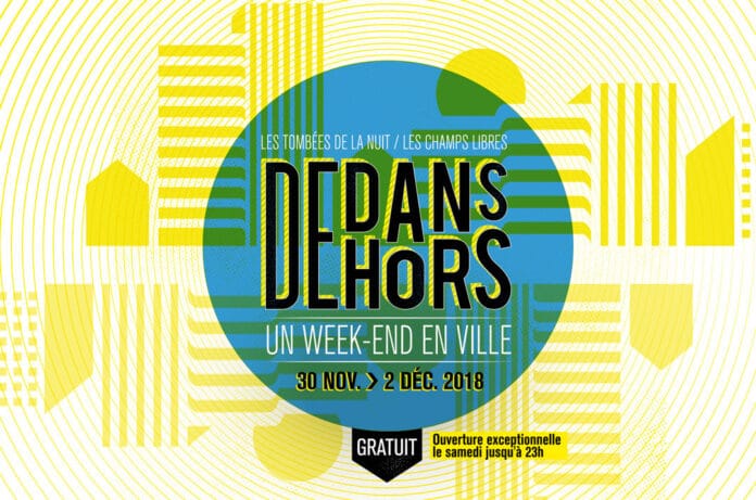 Vivez un week-end en ville à Rennes dedans dehors les 30 novembre, 1er et 2 décembre ! Telle est la proposition des Tombées de la Nuit faite aux Champs libres qui les accueillent avec le soutien des Dimanches à Rennes. Il y a la ville que l’on se contente d’habiter, passivement, parfois tristement, celle que l’on regarde avec indifférence, voire avec aversion. Et il y a celle que l’on décide de voir autrement, les petites histoires cachées à lire, dont on choisit de faire le décor de mille aventures poétiques et humaines. C’est cette ville que, le temps d’un week-end, d’installations en performances, de parcours en concerts, du dedans au-dehors, Les Tombées de la Nuit et Les Champs Libres invitent à parcourir.