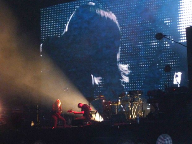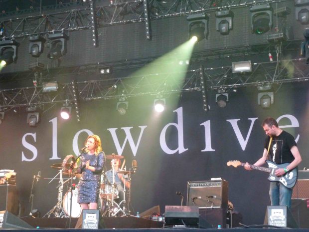 C’est ensuite aux revenants de Slowdive que va incomber la lourde tâche d’assurer le dernier set avant le concert tant attendu de Portishead. N’ayant pas commis de nouvel album depuis… 1995, le groupe de Reading, qui se reforme pour une tournée, entend reprendre les compositions avec lesquelles ils ont bâti leur influence dans le milieu shoegaze-dream pop, mais également essuyé des critiques peu avantageuses. Un retour qui suscite quelques réserves. Pourtant, le quintet mené par Neil Halstead et Rachel Goswell offre une bien belle prestation, sage certes, mais sensiblement envoûtante. Guitares éthérées, mélodies mélancoliques et aériennes… il y a comme un brin de magie dans l’air du soir, qui s’épanouit au fur et à mesure que la nuit tombe ; le public – fan de la première heure ou non – est prompt à applaudir.