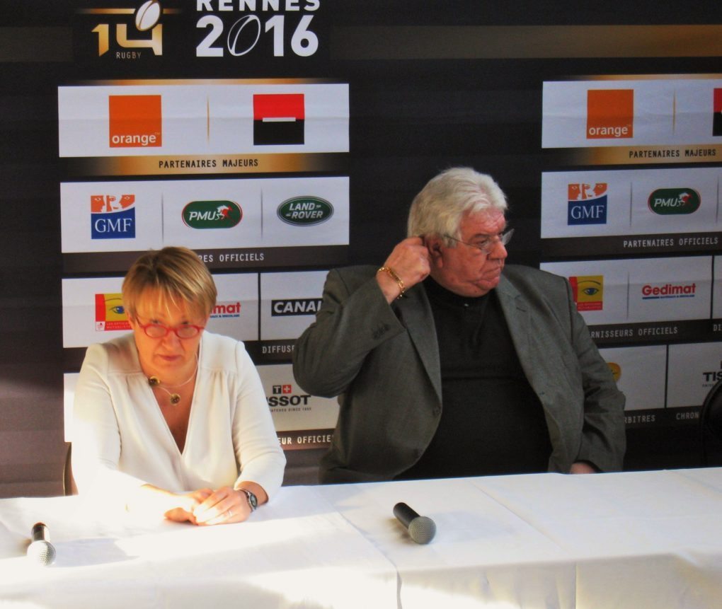 Oui : les demi-finales du Top 14 de Rugby se déroulent au Roazhon Park de Rennes les 17 et 18 juin 2016 ! C’est sous le regard circulaire et métallique du célébrissime bouclier de Brennus qu’Olivier Tomine, directeur général du Rennes football club, recevait le lundi 11 janvier, tout ce que le rugby compte de gens concernés, en Bretagne, comme à l’extérieur. Ladies first : Nathalie Appéré a présenté le projet de demi-finales, assistée de Paul Goze, président de la ligne nationale de rugby, de René Ruello, président du stade Rennais, et de Thomas Savare, président du stade Français.