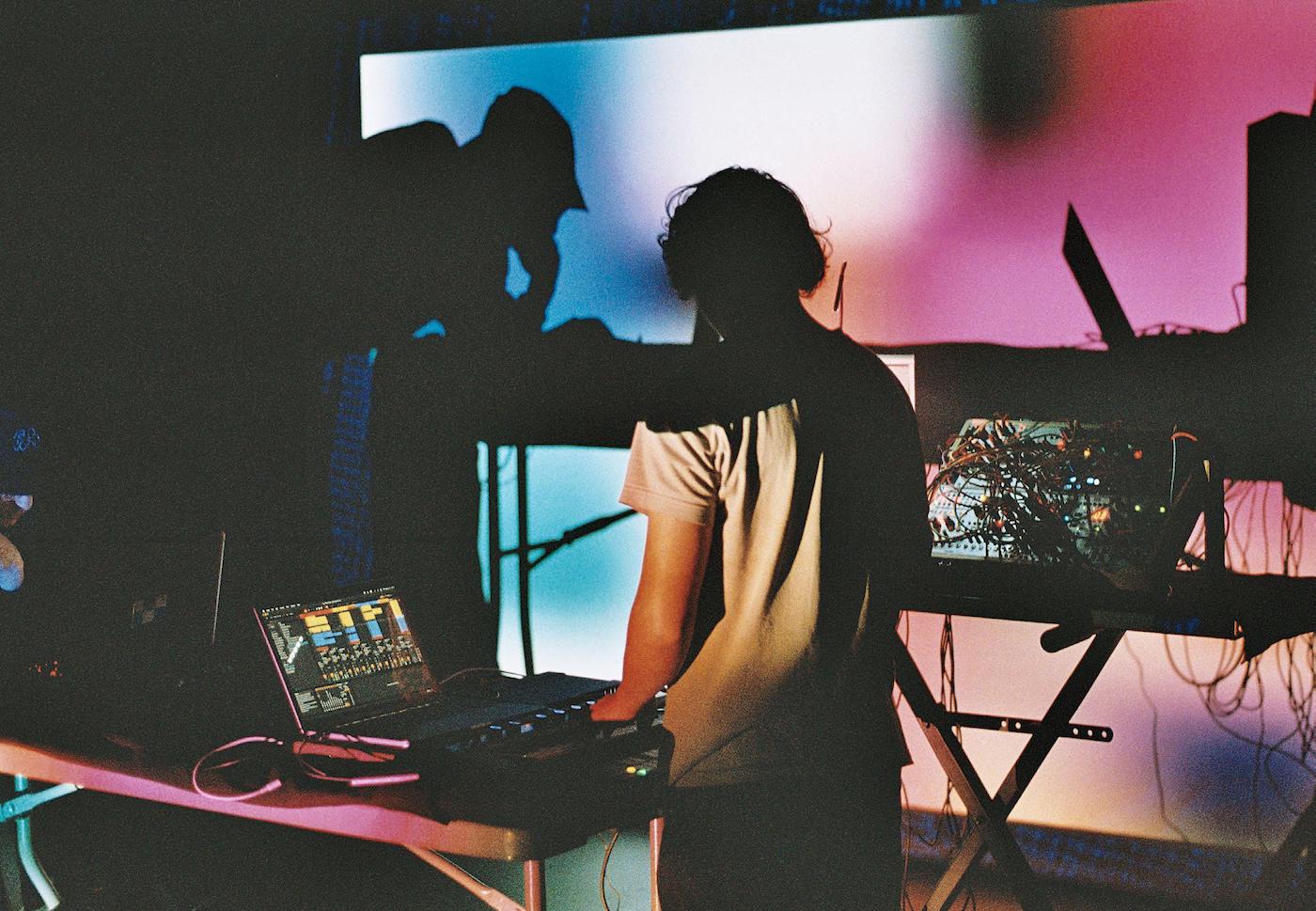 Les deux complices artistiques conçoivent une performance captivante, dans laquelle le matériel du musicien (le logiciel Max For Live et différents programmes de sa conception, un synthétiseur modulaire, un contrôleur MIDI, une trompette et un petit synthétiseur) dialogue avec celui de l’artiste visuel (plusieurs logiciels, une tablette de dessin numérique et un contrôleur MIDI) par OSC (open sound control), un protocole de communication entre dispositifs multimédia. S8JFOU a conçu des programmes pour Max For Live « qui envoient des informations très précises à Simon, que je peux déclencher avec à peu près tout ce que je veux dans Ableton, que ce soit la rythmique, l’intensité sonore en décibel, de l’aléatoire, etc. Il va alors réfléchir à ce qu’il peut faire des informations que je lui envoie, pour que ce soit cohérent et intéressant visuellement. Le chemin inverse est aussi possible : parfois c’est Simon qui crée du son en se mettant à dessiner ».