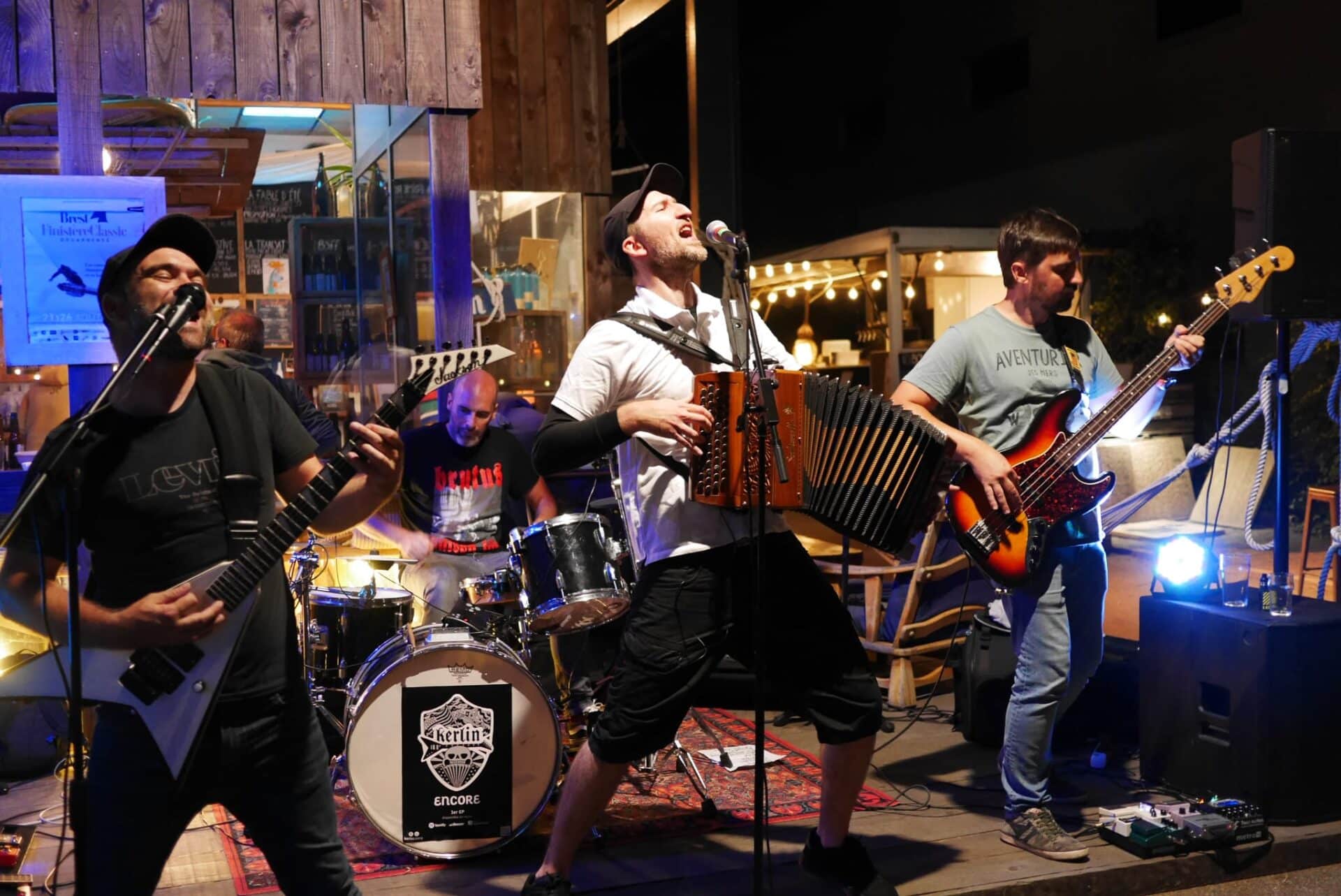 À noter que Kerlin jouera l’intermède des deux jours du festival vendredi et samedi. Kerlin est un groupe formé par quatre copains qui aiment le folk rock dynamique. Au croisement du rock-punk-accordéon brestois, de la chanson festive et du punk-métal, leurs inspirations se déversent dans un son moderne, festif, cohérent et compact. Avec des chants fédérateurs et une énergie débordante, Kerlin prend toute sa dimension sur scène…