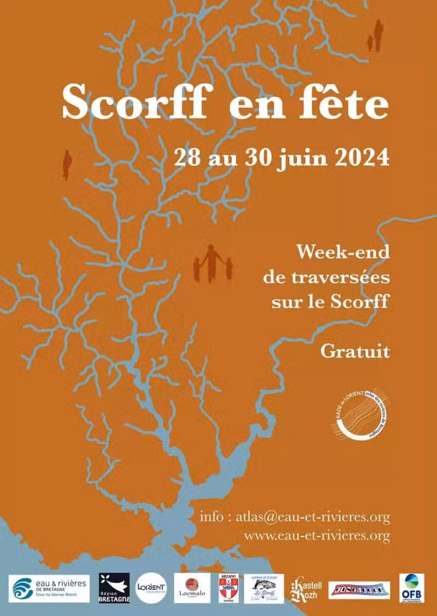 Événement organisé par Eau et Rivières de Bretagne en partenariat avec les associations et communes du Scorff et Lorient Agglomération dans le cadre de l’Atlas socio-culturel de la Rade de Lorient, estuaire du Blavet, du Scorff et du Ter, jusqu’aux couteaux de Groix