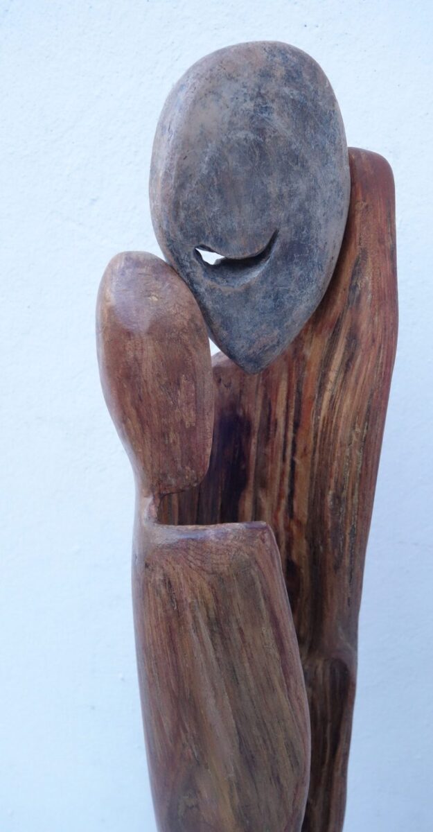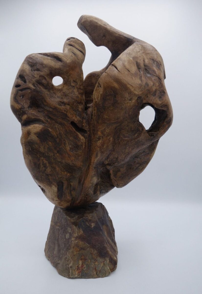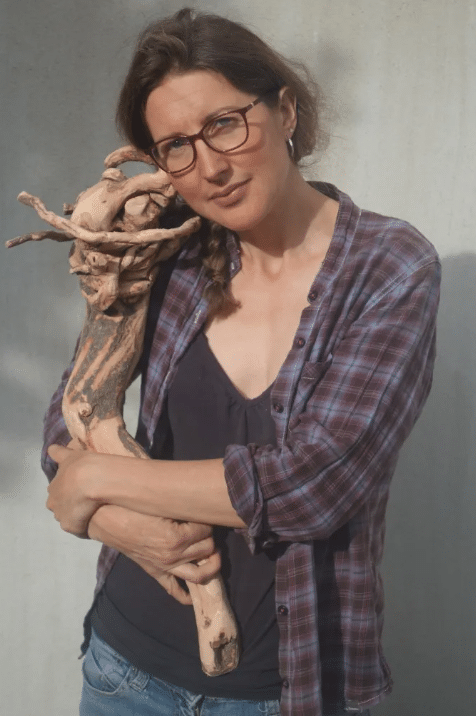 Delphine Tréhard : de par son univers autour du bois, sa matière de prédilection, elle est devenue Madame-bout-de-bois. Consciente de l’importance du bois mort dans l’écosystème, elle le ramasse et offre un nouveau regard sur cette matière par la sculpture. Ses formes, ses entrelacs sont sa source d’inspiration, particulièrement les cavités, les orifices qui laissent passer la lumière. Ce sont les forêts qui ont nourri l’imaginaire de l’enfance de Delphine Tréhard, avant ses voyages au Burkina-Faso, au Brésil, en Guyane, qui ont imprégné son esprit des différentes cultures, des couleurs, du travail du bois et du rapport à la nature à travers l’art.