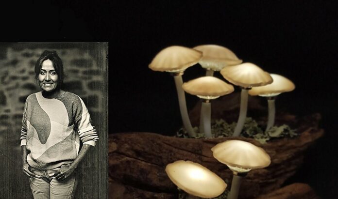 Sensible à la nature, Faustine Maladry connaissait certains champignons naturellement luminescents comme : la panelle styptique que l’on trouve en France, la mycena lucentis, ou encore le omphalotus nidiformis ! C’est en s’inspirant de leur beauté, que l’idée de créer dans son atelier des œuvres végétales lumineuses, germe alors dans son esprit !