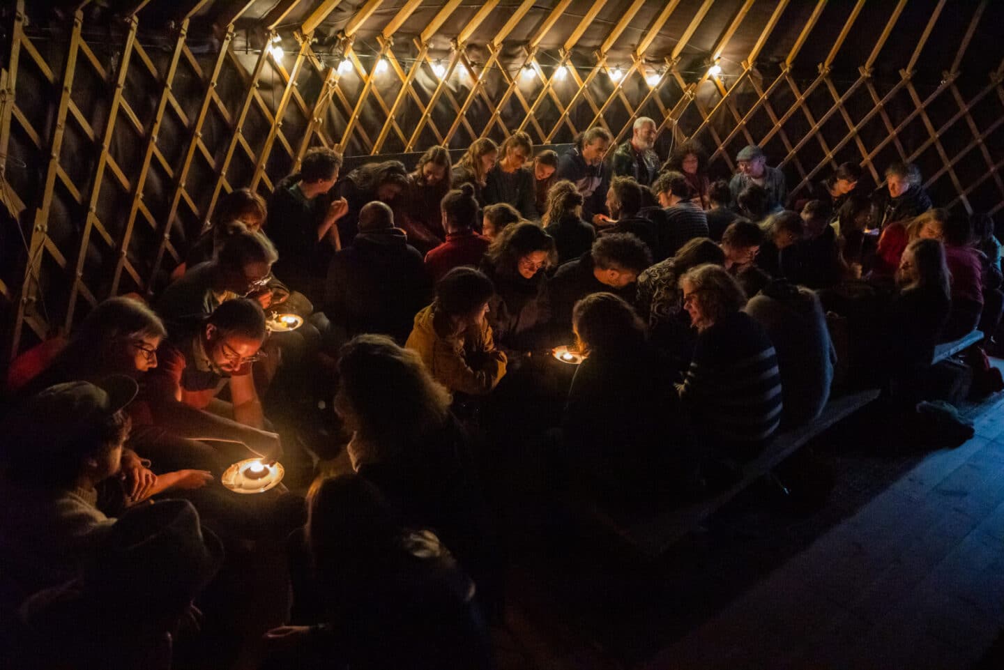 Dans le prolongement des ateliers, la yourte reste ouverte à ceux qui souhaitent venir prendre la pause déj’ dans un esprit d’auberge espagnole.