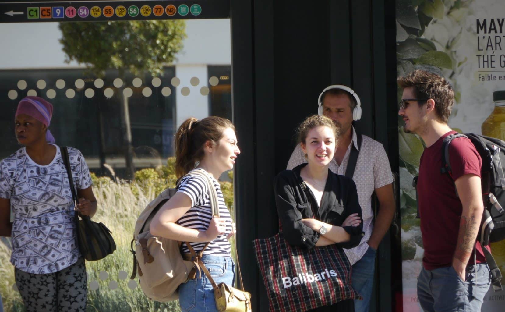 Le regard des usagers se croise, les têtes se tournent vers l’origine de cette intervention déroutante. Devenant spectateurs par surprise, les passants sont amusés ou intrigués. Cependant, des sourires se dessinent sur les visages et certaines réactions ne tardent pas à se faire entendre : « C’est bizarre, deux personnes chantent à côté de moi », s’étonne une passante au téléphone.