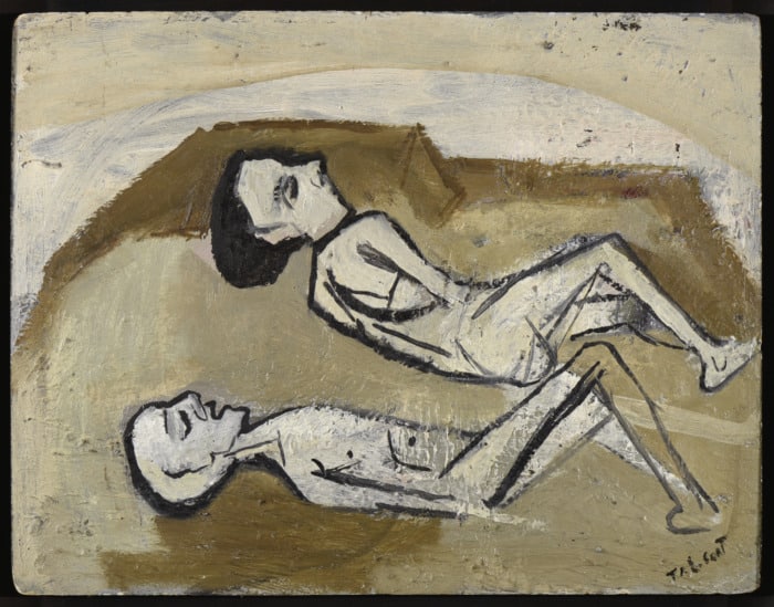 Silex perdus, huile sur toile de jute (1959) H. 81 ; l. 100 cm M.b.d Fonds Tal Coat – Domaine de Kerguéhennec. Collection départementale du Morbihan (c) Illés Sarkantyu – département du Morbihan / ADAGP, Paris 2019.