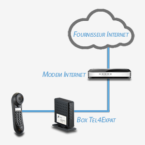 La solution Tel4Expat s’adresserait davantage à l’usager qui téléphone de préférence à des téléphones fixes. Il s’agit d’intercaler un petit boitier sur sa ligne internet (vendu 79€) et d’appeler vos correspondants en illimité moyennant un abonnement (9,99 euros/mois). Mais la fonction qui paraît la plus intéressante est de pouvoir être appelé soi-même par ses correspondants sur un numéro français à l’étranger. Le transfert est automatique vers cette box et cela limite donc le surcoût pour l’appelant. Ce principe est assez proche de ce qui se pratiquait il y a quelques années avec les Kertel et autres opérateurs proposant des appels moins chers via de petits boitiers à intercaler sur sa ligne. Ces solutions ont depuis disparu au profit de cartes prépayées et de l’ADSL.