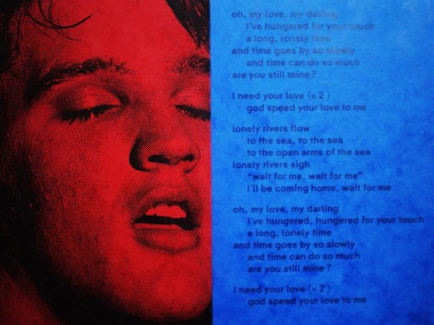 Le roi-enfant du rock’n roll, unique et gémellaire, chtonien et stellaire. Le King est le guide inconstant et consistant de l’éveil paradoxal. Le pelvis, celui qui, au rythme effréné de ses déhanchements a rallumé dans l’âme populaire le re-souvenir du monde imaginal dont celui-ci, gavé d’images fausses et délétères n’est que le reflet inversé. Le King, souriant béatement et dansant comme un beau diable est le guide, celui qui montre la voie à chacun unique hors du « jailhouse » platonicien, c’est lui, le bodhisattva de notre yoga délétère et raplapla.