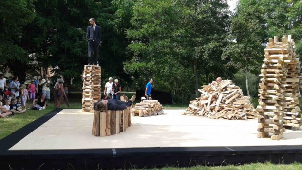 Apigné, où le soleil a brillé durant ce week-end, a ainsi accueilli touristes et habitués des lieux. Fumées de barbecues et discussions animées se mêlaient aux ronflements des adeptes de la sieste sur transat. Un univers boisé qui s’y prête parfaitement, mélange de nature et de relaxation. Boisé, c’est justement ce thème qui est mis en avant par l’un des spectacles OVNI de ce week-end : La Cosa. L’artiste italien Claudio Stellato, accompagné de trois complices, se risque à une performance chorégraphique où corps humain et matière naturelle ne font plus qu’un. Les quatre compères nous transportent vers un horizon plus sauvage que la danse contemporaine et plus indéfinissable que la transe. Dans un spectacle où art de la contorsion et du mouvement côtoie humour et stupéfaction.