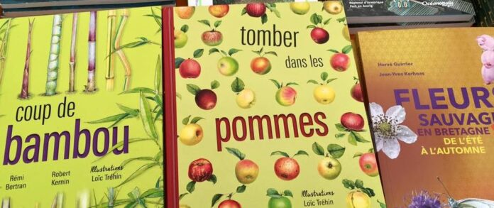 Manquait un troisième larron, un homme à l’écriture irréprochable. Leur éditeur, Florent Patron (éd. Locus Solus) leur présente Hervé Guirriec, spécialiste du patrimoine culturel et naturel des Monts d’Arrée. Le retraité de l’enseignement agricole se consacre désormais à l’écriture et à l’apiculture. Ensemble, ils mettent au point le contenu et la maquette de leur ouvrage. Ils sélectionnent une cinquantaine de pommes et pommiers pour leur intérêt historique ou naturel. Loïc Tréhin réalise un portrait naturaliste, à l’aquarelle, de ces pommes. D’une facture classique, très fidèle à la morphologie végétale – on pense aux planches botaniques de Redouté. Elles ornent chaque page de droite.