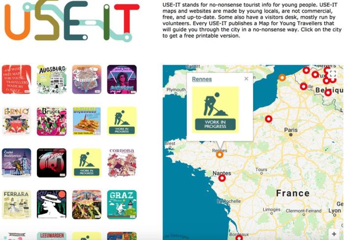 Depuis sa création en 2005, le label Use-It (Belgique) propose des cartes touristiques alternatives en Europe. Pas moins de 40 cartes circulent déjà, chacune avec un graphisme propre, reflet de sa ville.