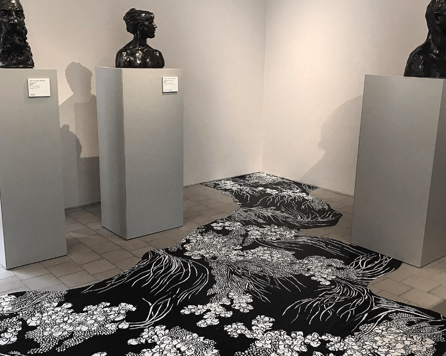 Le Musée des Beaux Arts La Cohue de Vannes dans le Morbihan présente Et comme une faïence bleue, l’installation graphique, monumentale et immersive de Salomé Fauc, jusqu’au 5 janvier 2025.