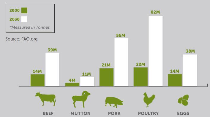 Les perspectives d’avenir relatives à la consommation de viande sur notre planète sont alarmantes. Elles posent des problématiques environnementales graves, notamment les rejets de gaz, la consommation d’eau et les maladies dues à la promiscuité dans les élevages. Ces malheureuses évolutions ne sont pas sans répercussion sur les flux migratoires et sur la démographie.