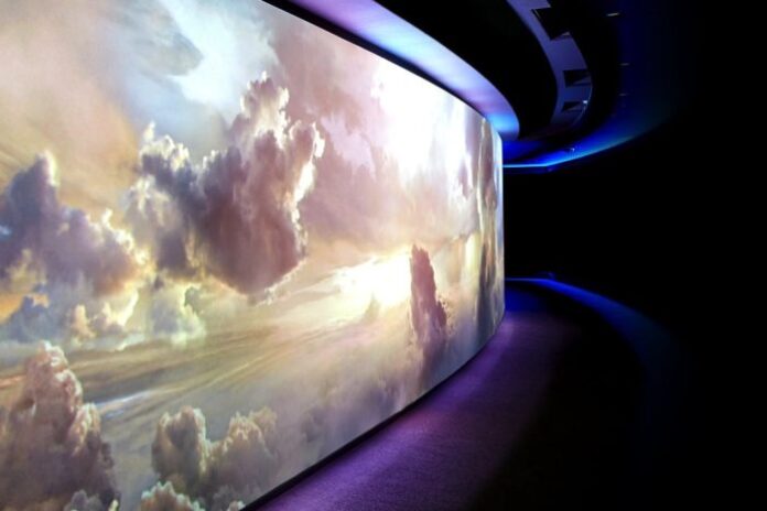 Un couloir équipé d’un long écran incurvé génère une ambiance sonore conforme au film projeté. Il facilite la transition de la vie quotidienne à la salle. « C’est une vraie chance pour les réalisateurs de commencer leur histoire avant même le début du film », souligne le responsable Dolby.