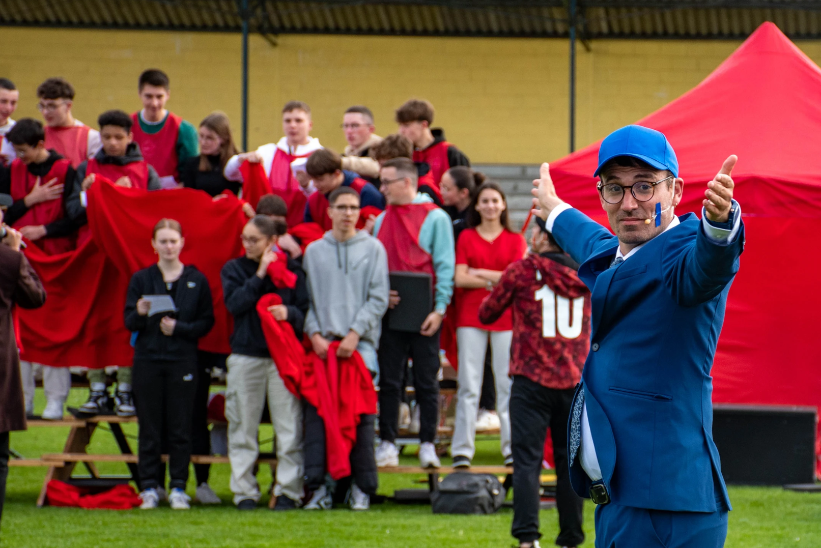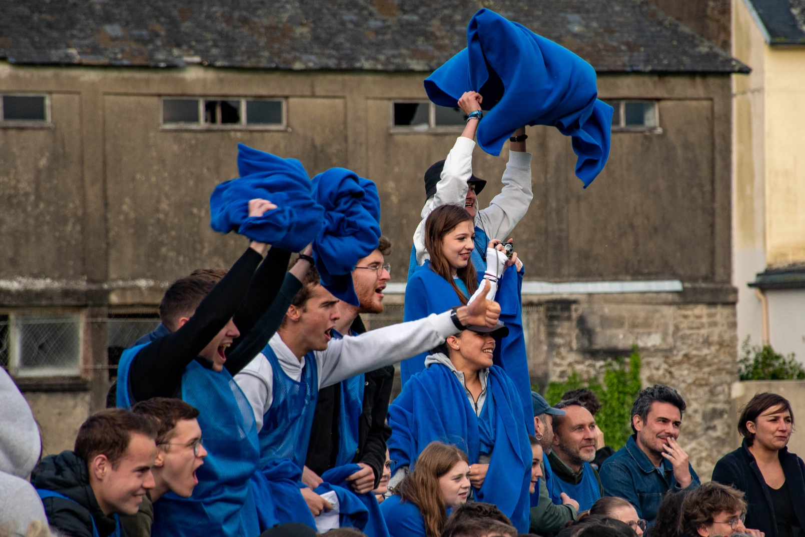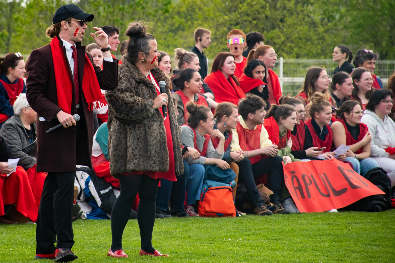Roméo Montaigu et Juliette Capulet sont deux amants dont l’histoire d’amour est malheureusement impossible à cause des relations qu’entretiennent leurs familles. Désormais, chaque famille a besoin de votre soutien ! Antonin Fadinard explique le rôle important du public dans ce spectacle immersif : « On est invité à entrer dans le stade de Vérone. Le spectateur choisit soit un maillot bleu (Montaigu), soit un maillot rouge (Capulet) et se dirige dans le gradin de sa famille. Il sera invité à soutenir son équipe, voire à huer les joueurs/joueuses de l’équipe adverse ». Néanmoins, le public s’efface au profit de l’œuvre de Shakespeare lors de certaines scènes : « On alterne entre des moments expansifs où il y a une participation du public comme des supporters, et des moments plus intimes où l’action se resserre, où le public redevient public », nous annonce le metteur en scène.
