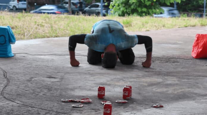 Patrice de Bénédetti : À travers les canettes vides et pleines, je tente de montrer les gagnants, les perdants, ceux qui passent et ne passent pas. C’est un bien de consommation universel, mais c’est aussi le symbole de l’impérialisme américain, du capitalisme qui nous écrase.