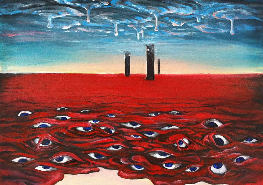 « L’exposition permet de découvrir une palette artistique large (1). C’est vraiment merveilleux, les gens travaillent dans un style surréaliste à travers le monde ». Parmi la centaine d’artistes (49 pays), la peinture A way of a heart de Yuliya Patotskaya apporte une illusion picturale figurative propre à son travail. Au milieu d’un paysage nébuleux baigné dans une lumière éclatante, un chemin de couleur pourpre se dessine, balisé par ce qui semble être des os.