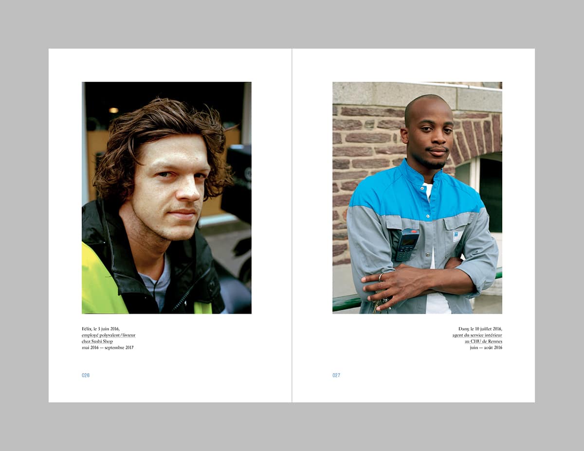 Yves Drillet – Le format du livre d’artiste me plaît. Les photos résonnent bien ensemble : lorsque l’on tourne les pages, il y a une continuité d’un portrait à un autre, d’un uniforme à un autre… Les sujets photographiés ne sont pas forcément fiers de leur emploi, mais souhaitent tout de même être fiers de poser.