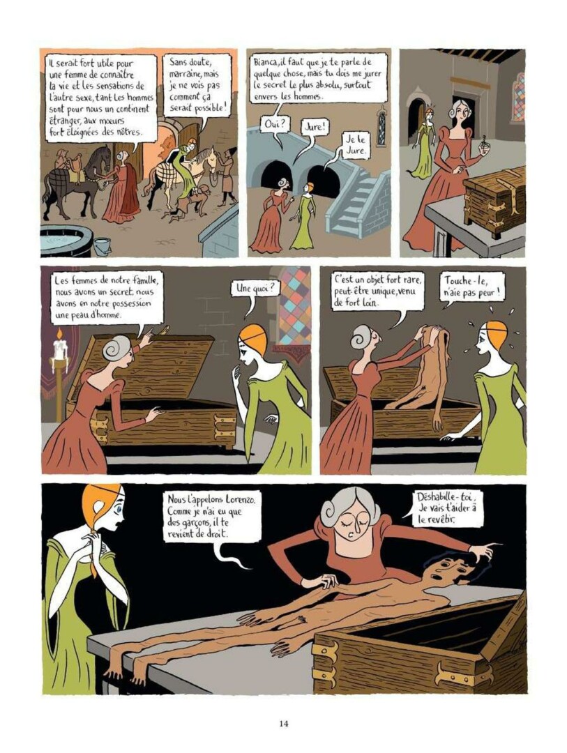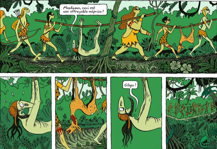 Premier fan des histoires d’Hubert, Zanzim avoue avoir toujours son fantôme par-dessus son épaule. Mais contrairement au grand bavard qu’il était, comme il le souligne, le dessinateur préfère raconter par le dessin et trouver un équilibre. Il laisse la liberté aux images de s’exprimer et pour cette raison, L’Île aux femmes se rapproche de la bande-dessinée muette. Une option qu’il ne rejette d’ailleurs pas sur le long terme. « Émile Bravo fait des dessins dans des bulles. Ce n’est pas de l’écriture, mais ça aide un peu. C’est muet sans être muet », s’amuse-t-il. « Ce genre d’exercice m’intéresserait, mais j’aime aussi l’écriture. Je n’aime juste pas quand il y a trop de récits. »