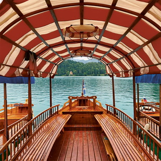Voyez ce bateau appelé « pletna » en Slovénie. Il se dirige sur le lac de Bled, en direction du plus ancien château médiéval de Slovénie.
