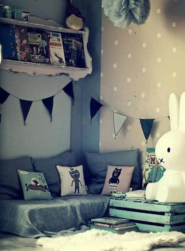 Installé un fauteuil, des poufs ou des gros coussins dans un angle (idéalement à l’écart d’un écran). Prenez l’assise de votre choix, le plus important est de se sentir bien et confortable. Il vous faut également une couverture (épaisse ou légère selon la saison). Ajoutez ensuite une bibliothèque à proximité, un meuble ou ne serait-ce qu’une petite table où il est possible d’entasser vos trésors littéraires. Et pour finir, une lampe de chevet, sur pied ou une guirlande lumineuse pour une ambiance feutrée et le tour est joué !