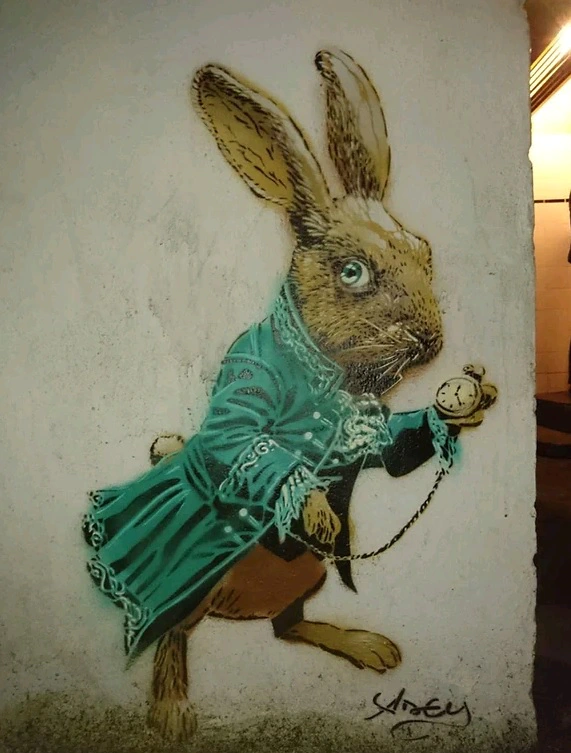 De retour de ce voyage particulièrement plaisant, elle peint un lapin pour « marquer le coup ». Celui dont on ne doit pas prononcer le nom en mer ne la quittera plus et l’accompagne désormais dans toutes ses nouvelles aventures artistiques. Symbole de l’intuition, de la capacité à lâcher prise et de la découverte, cette mignonne boule de poil personnifie l’idée de nous emmener dans des contrées inconnues. Adey trouve en lui son animal totem, « puis il fait écho à des références que j’aime bien comme Alice aux pays des merveilles ».
