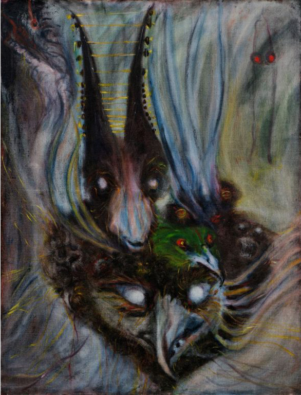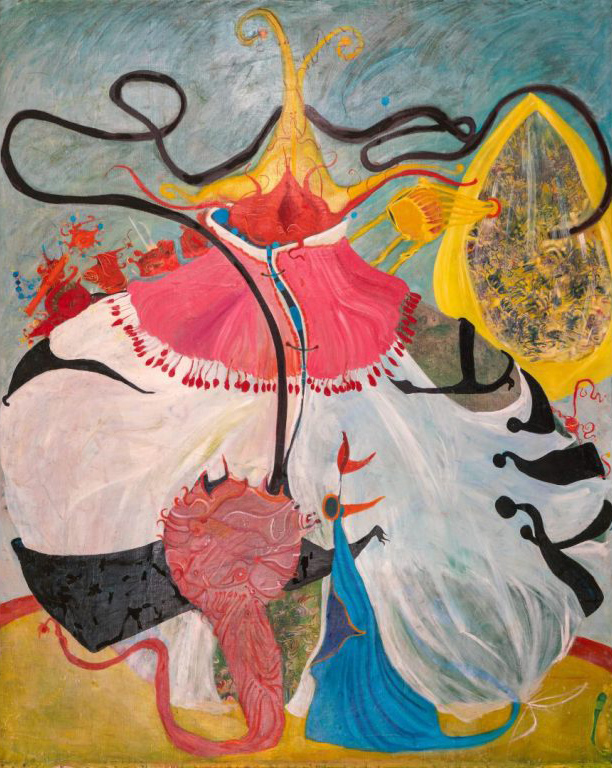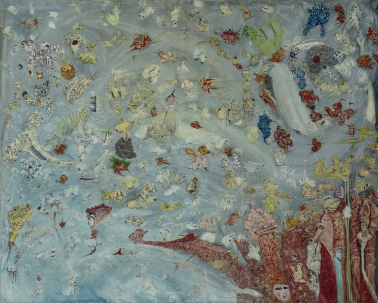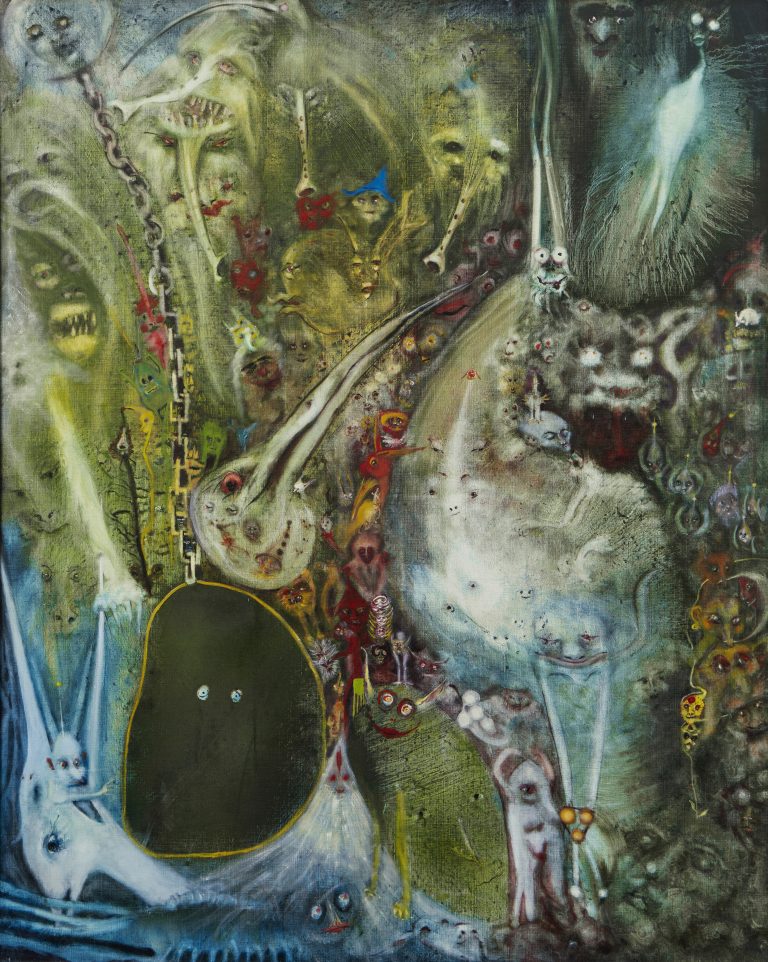 La matière se fait alors moindre et il se laisse aller à une création plus personnelle, monde intérieur retranscrit sur des toiles de lin. C’est à cette période que naissent ses petits personnages aux allures de créatures venues d’un horizon imaginaire. Il explore son inconscient et retranscrit des pensées, « des visions », dans des improvisations picturales fouillées, tantôt paysages abstraits sombres, tantôt mondes hallucinés colorés. « C’est une peinture très rythmée, il écoutait pas mal de jazz à cette période. » Sa pratique prend par la suite un tournant dadaïste et ses influences se font diverses. « On est ce que l’on a ingurgité. Ce à quoi on a été exposé ressort sur la toile. » On retrouve des caractéristiques du symbolisme dans L’Épine Solaire pèse le fou père (1968), La Cabane aux joies (1969) ou encore Au Royaume de la Quintessence (1969). Puis, ses univers plongent dans la science-fiction. On pense en regardant Écrin d’écart (1970), Sougalmelisme (1970), Je mâche une machine (1972) ou Le Cerveau de l’homme (1972) à l’esthétique du cinéma expressionniste allemand. Notamment aux films du réalisateur allemand Fritz Lang, notamment Métropolis (1927), peut-être des réminiscences de son expérience dans le cinéma. Aussi, « dans les années 60, il a beaucoup aimé le dessin Philippe Druillet », fondateur du mensuel Métal Hurlant.