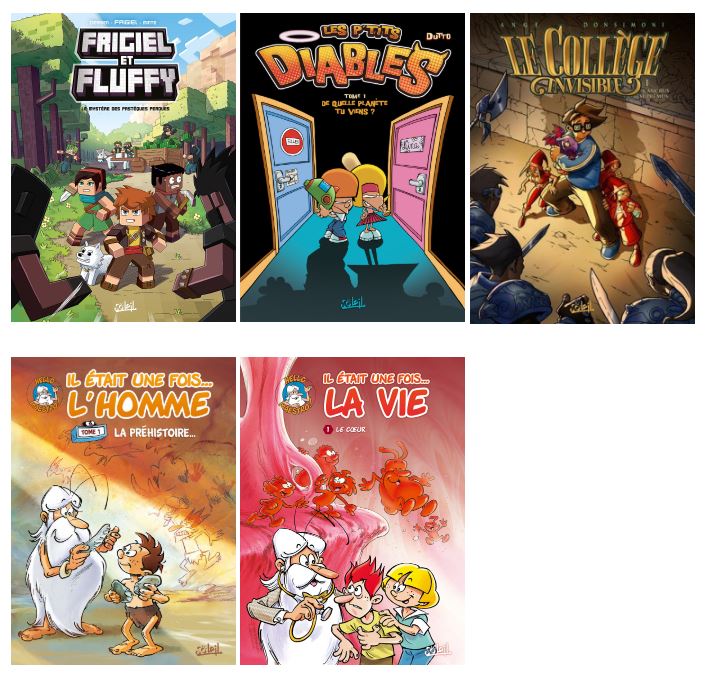 et chez Soleil : une belle sélection de 5 BD en autre Frigiel & Fluffy, les ptits diables, le collège invisible, il était une fois l’homme, il était une fois la vie … A retrouver ici