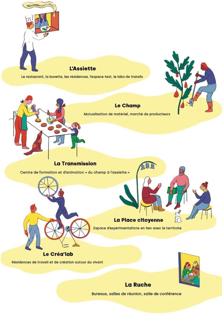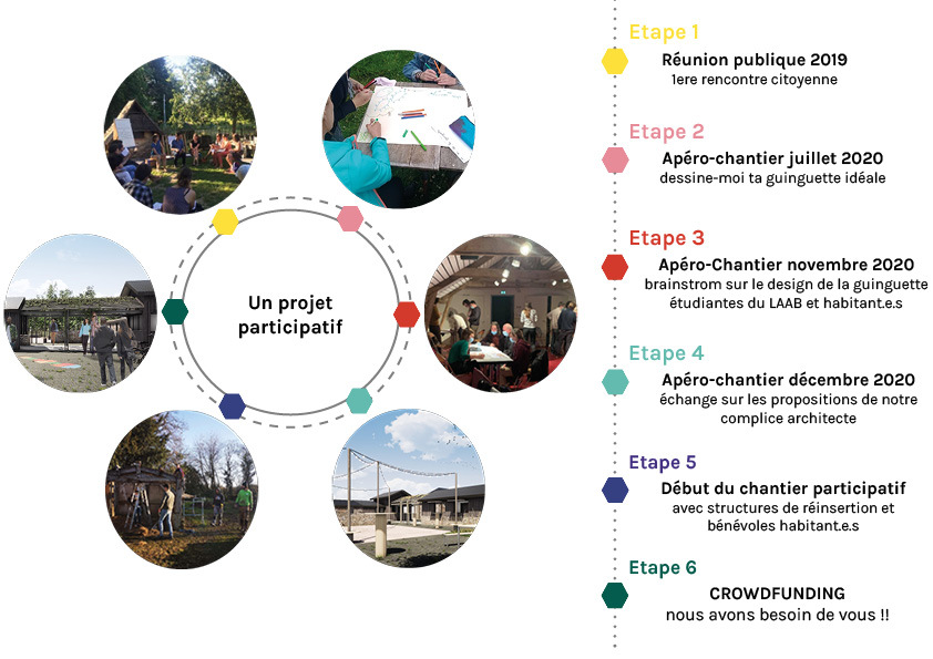 À cheval entre le statut associatif et celui d’une SCIC, société coopérative d’intérêt collectif, ce lieu de réappropriation citoyenne fonctionne de manière collégiale afin que tous les partenaires – habitants, salariés, acteurs culturels, éducatifs et agricoles – votent l’orientation de la structure. « On a ce commun qui est la ferme, c’est notre ressource. Après, il s’agit de savoir comment organiser une communauté autour de ce lieu pour la gérer ensemble. » Actuellement, l’équipe compte sept personnes salariées à l’année, quatre en service civique et une petite dizaine sur la guinguette en saison. Le lieu brasse plus de 200 personnes impliquées bénévolement dont une vingtaine très engagées.