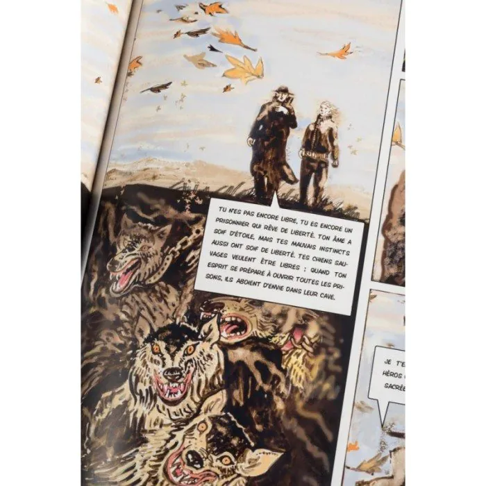 Après deux ans de travail, le premier tome de l’œuvre majeure de Nietzsche sort enfin. La BD est très fidèle au texte initial du philosophe dans la traduction de Hans Hildenbrand (Kimé, 2012). On suit Zarathoustra – le nouveau prophète d’un dieu unique – dans sa quête, ses rencontres et ses réflexions. Première surprise : là où on s’attendrait à une représentation du genre enturbanné et en tunique (comme on imagine les hommes de l’époque), on découvre un Zarathoustra au look d’Indiana Jones avec son chapeau ! Il tente de prêcher dans une ville à l’allure stambouliote, traverse des paysages évocateurs du Far West, du Japon, ou de l’île de Pâques. Il croise des « bouffons solennels » qu’on identifie sans peine. On reconnaît le Discobole, un archer assyrien, Vinci, Wagner, Hopper, Rubens, Botticelli… Bonne idée : pour chacun des thèmes abordés, une « chouette » philosophe donne un éclairage pédagogique bienvenu qui délivre des clefs pour une meilleure compréhension de cette pensée originale et poétique. « Vouloir libère », certes. Reste qu’il faut une bonne dose de volonté pour décrypter le message de Nietzsche ! Comme les textes sacrés, il est tellement alambiqué qu’on peut l’interpréter à sa guise. N’est-ce-pas, Adolf ?