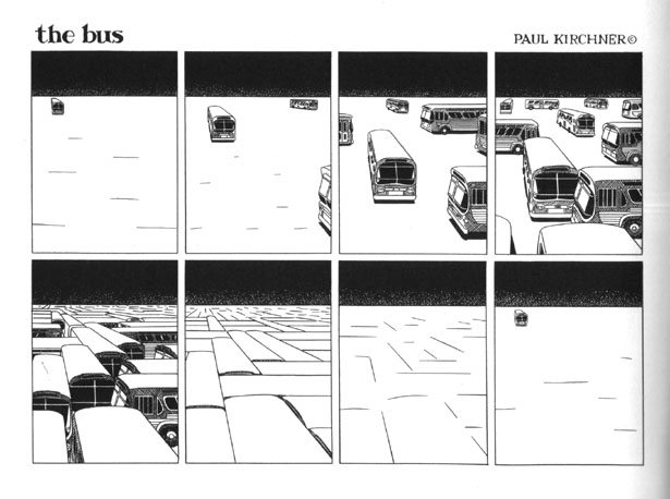 Paul Kirchner, auteur de bande dessinée, démontre au contraire que le bus peut être le véhicule d’aventures extraordinaires et transdimensionnelles. Les éditions Tanibis viennent de publier en album sa collection de strips the bus dans deux éditions parallèles ; l’une en traduction française, l’autre présente l’œuvre originale en anglais.