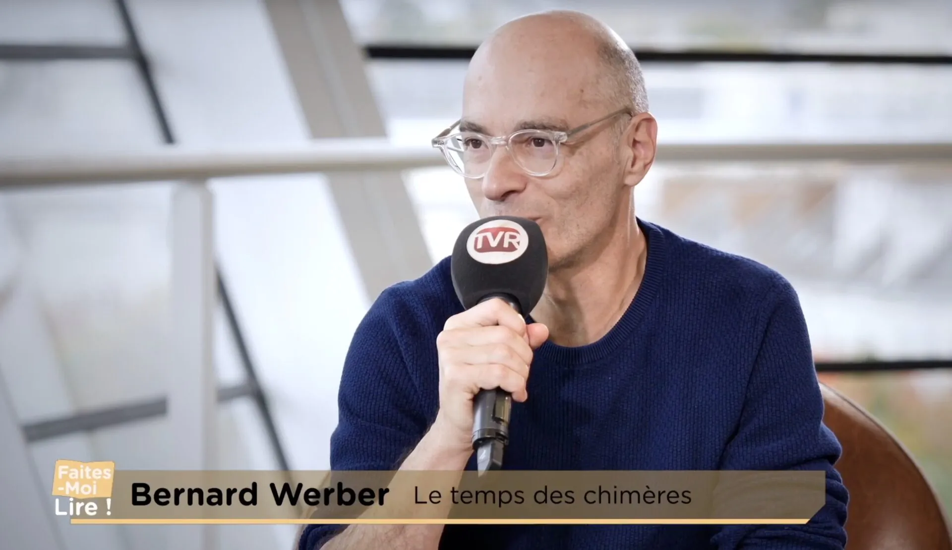 L’émission Faites-moi lire, coproduite par TVR, les Champs libres et Unidivers est ravie de recevoir Bernard Werber dans la belle bibliothèque de ce vaisseau culturel que sont les Champs libres. L’écrivain a accepté de présenter son dernier ouvrage, Le temps des chimères, et de répondre à quelques questions de Nicolas Roberti au sujet de sa production littéraire et de ses motivations…