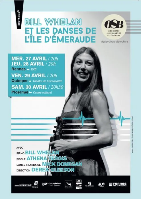Bill Whelan, est, ce qu’il convient d’appeler « une pointure ». Non content d’être un musicien extrêmement populaire dans son pays, il a acquis une notoriété qui dépasse largement les frontières irlandaises en composant de nombreuses B.O de films, de musiques pour le théâtre et d’adaptations d’œuvres aussi célèbres que le fameux HMS Pinafore, l’opéra-comique d’Arthur Sullivan et William Gilbert. Touche-à-tout de génie, il est surtout connu auprès du public français pour le spectacle musical « Riverdance » dont l’album a été disque de platine aux États-Unis, en Irlande et en Australie. Succès mondial, il a été vu par près de 22 millions de personnes et près de 2 milliards à l’occasion de sa diffusion sur le petit écran. Sur scène, Bill Whelan sait communiquer avec son public : simple et souriant il apporte les quelques explications qu’imposent les œuvres jouées. Il s’excuse de ne pas parler très bien français, mais fait mieux que de se débrouiller. En plus du talent, il est clair que l’homme ne manque pas de charme. Il nous entraînera dans une musique adroitement métissée de tonalité jazz, sans oublier les basiques des rythmes irlandais, populaires et énergiques. La violoniste Athéna Tergis lui apportera une vigoureuse réponse en l’accompagnant au « fiddle ». Le mot mérite quelques explications, mais il ne désigne rien d’autre qu’un violon normal joué dans le cadre de la musique populaire. Contrairement à la tenue à l’épaule, il est parfois tenu sur la poitrine et sa sonorité particulière est liée à l’emploi simultané de plusieurs cordes.