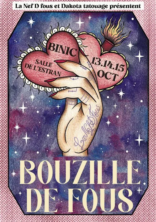 L’association La Nef D Fous organise la 3e édition de Bouzille de fous les 13, 14 et 15 octobre 2023. Organisé avec Dakota Tatouage, l’événement met à l’honneur près de 15 artistes tatoueurs présents pour décorer à merveille les peaux des adeptes de musique Rock !