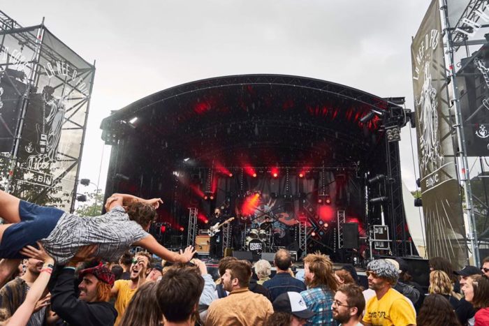 La première journée du vendredi 26 juillet fut rythmée notamment par le retour d’Henry’s Funeral Shoe. Le duo, formé en 2008 par les frères Aled et Brennig Clifford respectivement guitariste et batteur, avait déjà marqué le festival de sa présence à trois reprises, dont la dernière remonte à 2015. Quatre ans après, les Gallois ont récidivé et, une fois arrivés à 19h sur la scène Pommelec, ils ont commencé leur set par « High Shoulders Everywhere », morceau extrait de leur prochain album « Smart Phone, Rabbit Hole » dont la sortie est prévue pour le 20 septembre.