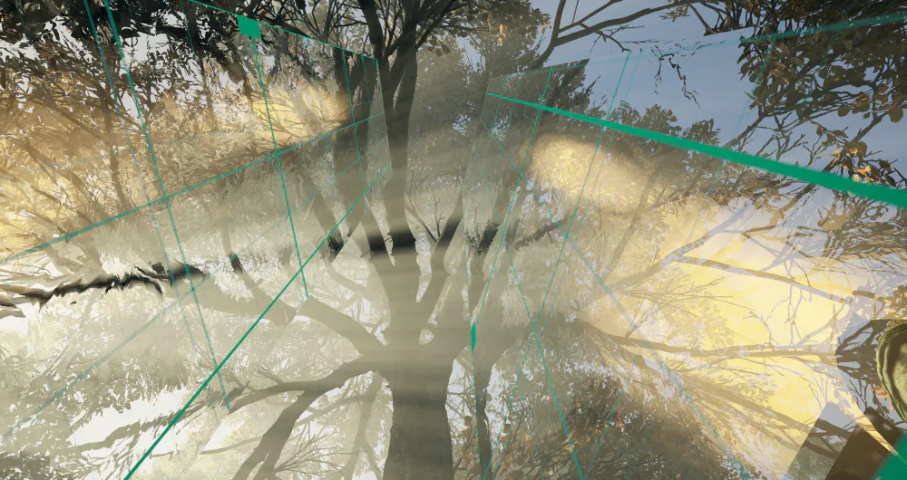 Les voyageurs et voyageuses naviguent dans des réalités superposées dans l’espace du Château d’Eau – Château d’Art grâce à des visio-casques de Réalité Virtuelle (VR) qui leur permettent d’explorer librement les œuvres numériques. Avec des airs de cosmonautes, iels vont découvrir une réalité alternative, visiter des mondes parallèles, traverser cette substance, où la circulation dans l’espace virtuel est la même que celle dans la pièce réelle.