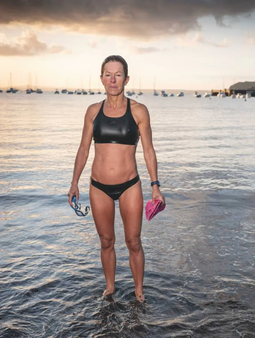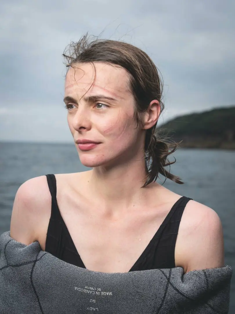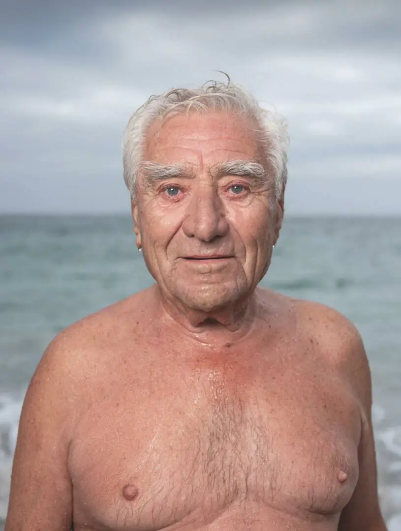 Après la terre, la mer. Une représentation de Brest, même actuelle, ne serait pas complète sans la mer, personnage tutélaire de la ville qui veille au grain. Dans sa série « Homo Aquaticus », Florence Joubert s’amuse à tirer le portrait de sujets fraîchement sortis de l’eau : nageuses, planchistes, plongeurs-démineurs, scientifiques, c’est tout une faune qui parcoure la mer d’Iroise. Travaillant aussi bien sur l’architecture, la nature, les métiers et les rapports entre territoire et identité, le rapport à la mer des Brestois et Brestoises qui la fréquentent quotidiennement, pour leur plaisir, leur métier, parfois les deux à la fois, était un sujet de choix. Brute dans sa mise en scène, la série semble s’arrêter surtout sur les regards des baigneurs et baigneuses dans lesquels la mer qui leur fait dos semble encore se refléter, comme si elle ne les quittait jamais vraiment.