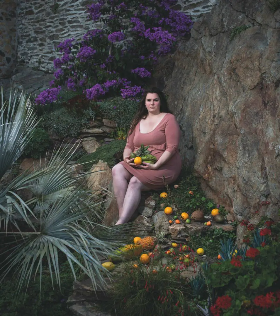 Après une préface signée Christophe Miossec, chanteur et figure brestoise bien connue, et un texte sur Brest de Catherine Cornic, professeure de lettres, l’ouvrage démarre avec « Le Jardin extra-ordinaire » de Vincent Gouriou. Photographe publié dans des médias de renom tels Libération, Le Monde ou Télérama, il excelle dans le portrait contemporain. Pour Brest c’est Byzance, il propose une vision exotique de la ville pour souligner sa dimension « de terre d’accueil, de refuge, en explorant ses jardins comme des allégories de la tolérance et de la diversité » (Fabien Ribéry). Loin du béton industriel du port, Vincent Gouriou a choisi pour décors à ses photos des écrins de nature : le jardin du conservatoire botanique, le jardin d’Éric à Plougastel, mais surtout le jardin extraordinaire, une initiative associative qui fait pousser des plantes exotiques sur les flancs de remparts du port de Brest. Ses sujets — des hommes, des femmes, d’âges et de couleurs de peau variés, seul·e·s ou à deux, des frères, des sœurs, des couples — sont placés dans une nature luxuriante où les fleurs et les fruits rivalisent d’éclat avec la verdure environnante. Des couleurs et des visages qui reflètent la diversité brestoise d’aujourd’hui.