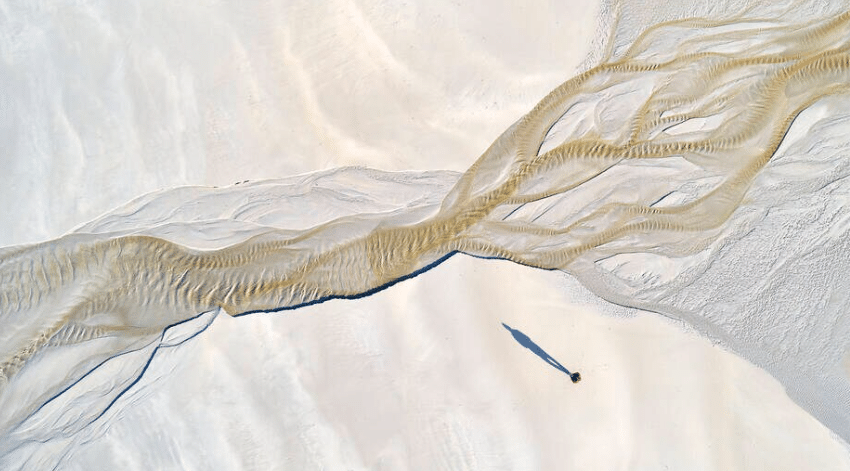 Spécialisée dans les photographies aériennes, Benoît Stichelbaut s’est adapté aux photographies prises à l’aide d’un drone, devenu un appareil magique pour lui, qui lui permet de prendre des photos à quelques mètres au-dessus du sol, une technique facile pour cadrer et pour l’angle de prise de vue. Le photographe aime le résultat obtenu par le drone sans contraintes d’altitude et de perspectives souvent écrasées.