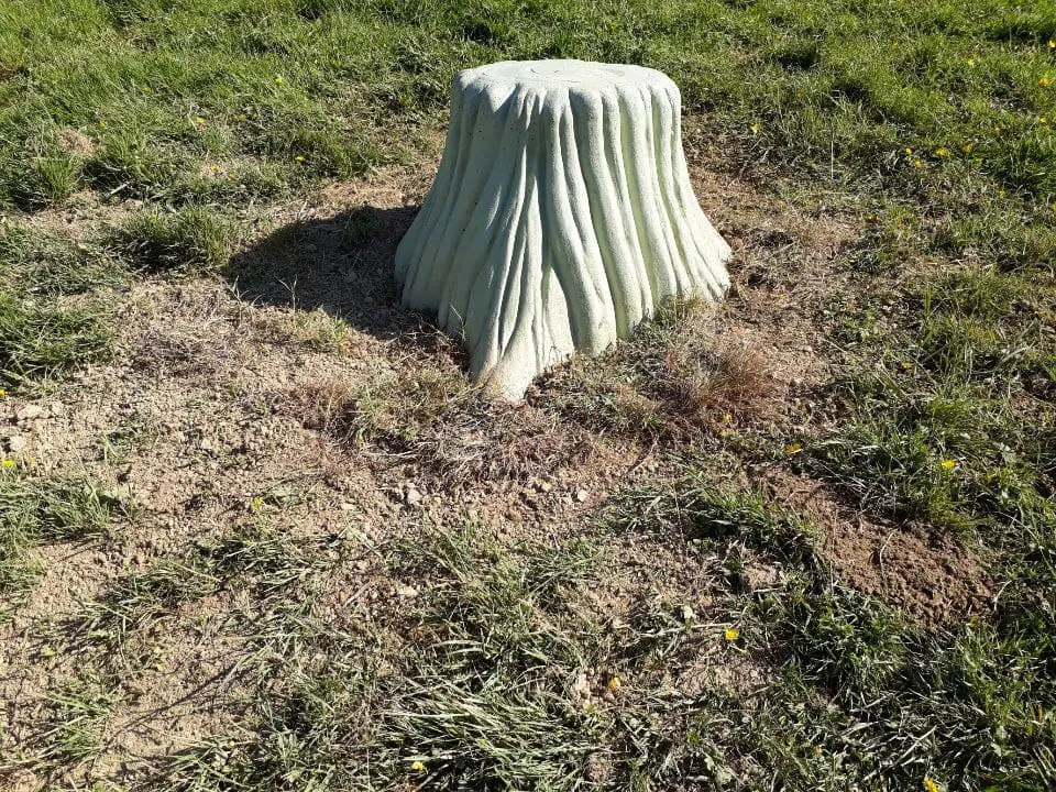 Avant la réalisation concrète, le sculpteur a dû intégrer des normes de sécurité relatives aux futurs usagers à son processus créatif. Les objets ne devaient pas, par exemple, être contondants pour que les enfants ne se blessent pas en jouant. « Il fallait aussi respecter un espacement de 2m entre chaque souche et qu’elles ne dépassent pas 55 cm de hauteur. »
