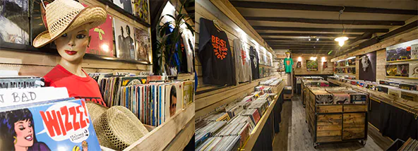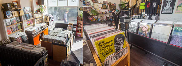 | Rockin Bones. 7 rue de la Motte Fablet (quartier Sainte-Anne) Ouvert : du lun. au sam. 10h-19h (ouverture à 14h le lundi, parfois) Prix moyen : Vinyle d’occasion dès 3€. Label Beast Records 16€. Hors-Label 15-30€. |