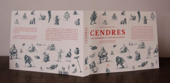 Roman illustré ? Livre d’art ? Livre d’artiste ? Cendres des hommes et des bulletins se contente d’être un objet unique. Cette somptueuse édition de 300 pages, mise en page dans une police de caractère originale – l’Alcalà – présente des rabats qui informent le lecteur de la nature du projet :