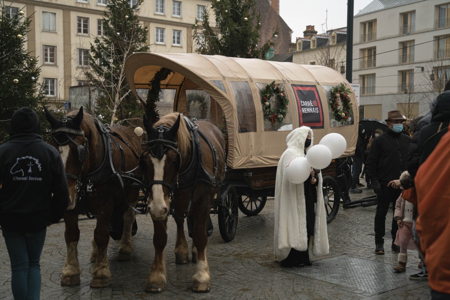 Tirées pas leurs chevaux – les 16, 17, 20, 23 et 24 décembre de 14h00 à 18h00, toutes les 30 min les calèches embarqueront les visiteurs pour une balade d’environ 15 minutes dans le centre-ville. Les places sont prisées et il est nécessaire de s’inscrire au préalable soit par téléphone au 06 47 26 25 02 soit au chalet du Carré Rennais.