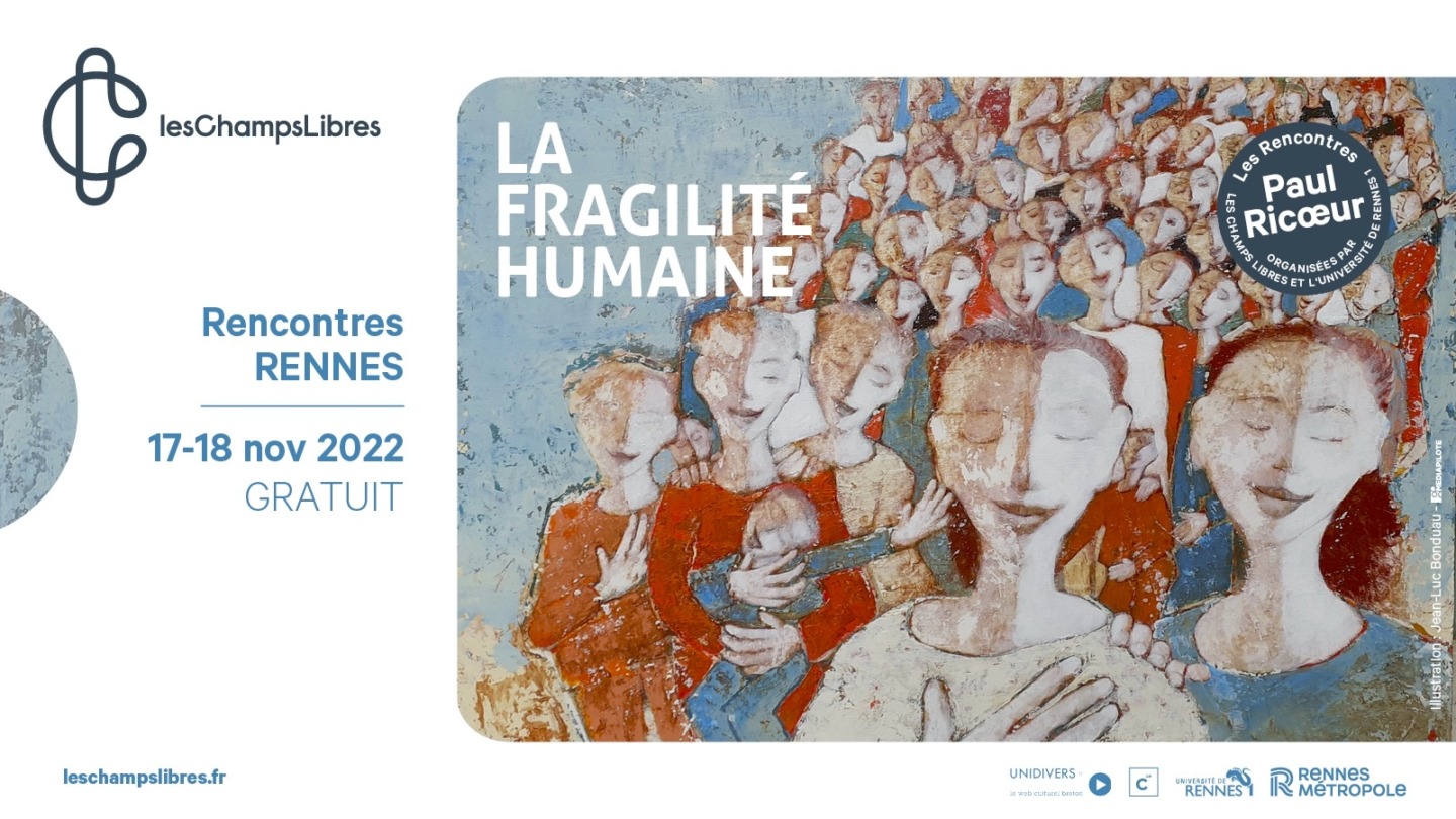 Les Rencontres Paul Ricœur mettent la philosophie au cœur de la cité. Organisées tous les deux ans par l’Université de Rennes 1 et Les Champs Libres, elles offrent un temps de réflexion pluridisciplinaire autour d’un thème inspiré par l’œuvre du penseur et appliqué aux grands problèmes du monde contemporain. Ouvert à tous et gratuit, l’événement invite à venir vivre et penser l’éthique de la fragilité et la fragilité de l’éthique les 17 et 18 novembre 2022.