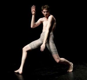 Est-ce se perdre en surinterprétations que d’évoquer les aspects religieux du solo ? Ciel semble proposer un syncrétisme entre christianisme et paganisme.[i] D’une part, la pièce paraît rendre hommage à la sainteté du corps humble, du corps souffrant, du corps au martyre, du corps en extase et d’autre part, le danseur aime figurer le corps jouisseur, pulsionnel, à l’animalité turbulente. Ce corps là prend les postures désinvoltes du satyre, dans un hymne à Pan ou Bacchus – pour se limiter ici à des références de culture européenne.