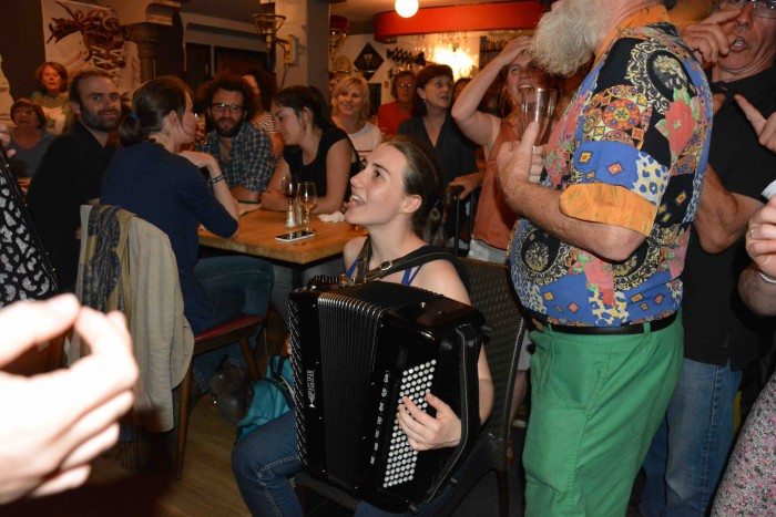 Jeudi soir 21h, Boulevard de la Tour-d’Auvergne, on pouvait entendre fredonner des airs des Balkans. C’est dans le bar l’Avant-Scène que le collectif Tête à l’Est organise chaque mois une soirée bœuf. Malgré l’étroitesse du bistrot, une centaine de personnes sont au rendez-vous. À l’intérieur comme à l’extérieur, on pousse la chansonnette. C’est en musique que les musiciens entrainent le public vers un long voyage. À la découverte de l’Europe de l’Est.