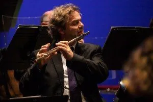 Bien qu’il ait été célèbre en son époque et musicien respecté, beaucoup feront la connaissance d’Erwin Schulhoff au travers de ce concerto pour flûte, piano et deux cors. C’est une œuvre assez étonnante par les contrastes qu’elle offre. Une des parties est entamée vigoureusement par les altos, reprise ensuite par les violons puis les violoncelles et enfin, plus tard, les contrebasses comme s’il se fut agi d’une fugue de Bach, mais avec une touche de moquerie qui vient ensuite souligner le côté pastiche. Avec Schulhoff, on est souvent déconcerté, mais amusé également par les changements d’ambiance. Ce sera l’occasion pour Eric Bescond d’exposer l’étendue de son talent et c’est un réel plaisir de voir le flûtiste de l’Orchestre symphonique de Bretagne ponctuer ses interventions d’un sonore claquement de talon ou d’un amusant saut à pied joint, démontrant à quel point il vit sa musique et s’y investit totalement.