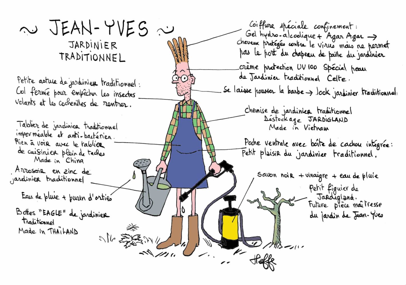 Le séjour forcé à la maison a bien fait les choses et Jean-Yves, après avoir écumé les tutos de You Tube, s’est mué en jardinier de tradition, ce qui était la moindre des choses pour un Conservateur. Le samedi avant le début du confinement – Quelle bonne idée ! – il a filé chez Jardigland pour s’acheter la panoplie complète de jardinier traditionnel ce qui a bien fait rire Dorothée son épouse, plus habituée à le voir le nez dans ses Enluminures !